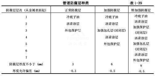 3.3.1.3 埋地管道做防腐層時(shí),其外壁防腐層的做法可按表1-39 的規(guī)定進(jìn)行。