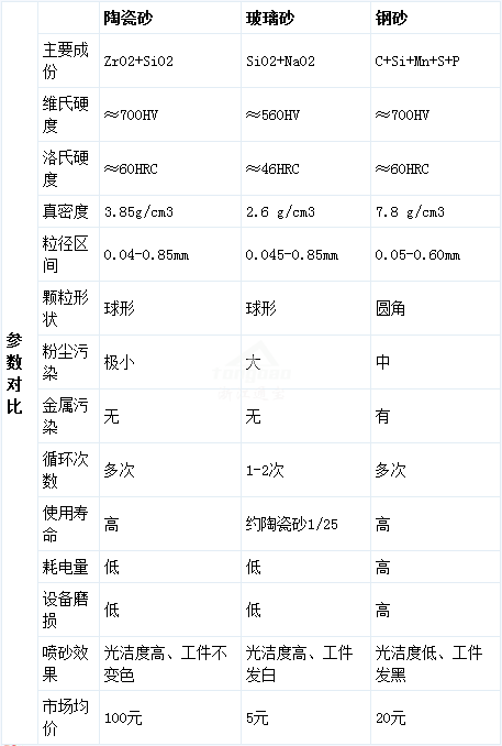4、陶瓷砂相比玻璃砂效果更好,光潔度等級更高,壽命也比玻璃珠延長10倍。