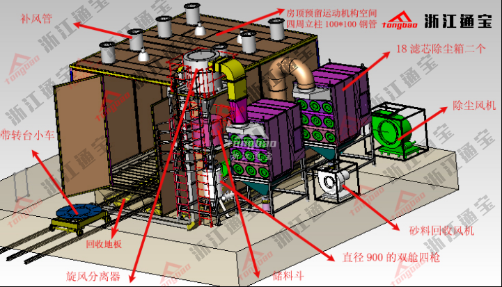 浙江通寶廠家直供各種噴砂房、環(huán)保噴砂房、自動(dòng)回砂噴砂房,關(guān)于噴砂房?jī)r(jià)格請(qǐng)聯(lián)系0573-88361168|88362566